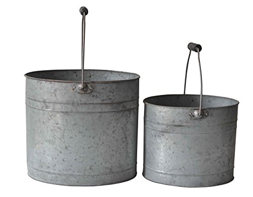 Cheung's FP-4249-2 Oval Metal Bucket With Wood Grip Handle, Set Of 2
