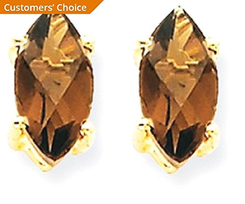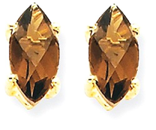 ICECARATS DESIGNER JEWELRY 14K YELLOW GOLD 8X4 MARQUISE SMOKY QUARTZ POST STUD BALL BUTTON STUD EARRINGS