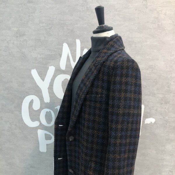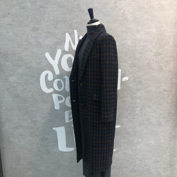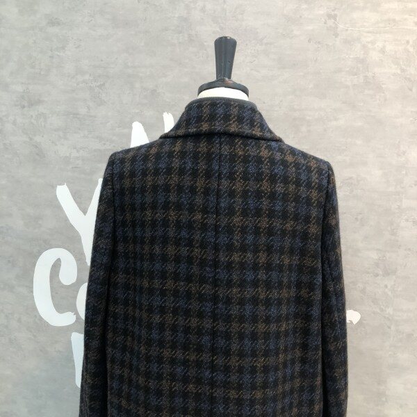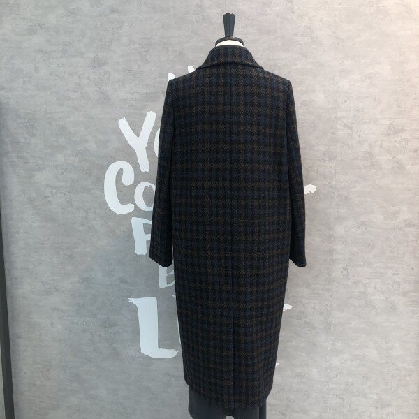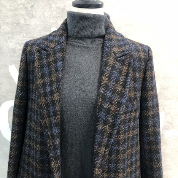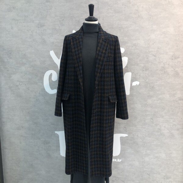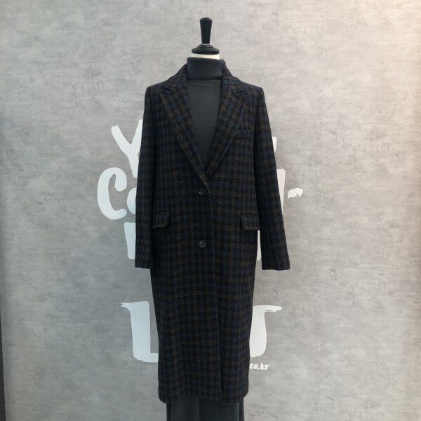 체크패턴의 울조직감이 돋보이며 피그드 라펠의 실루엣이 시크한 코트입니다