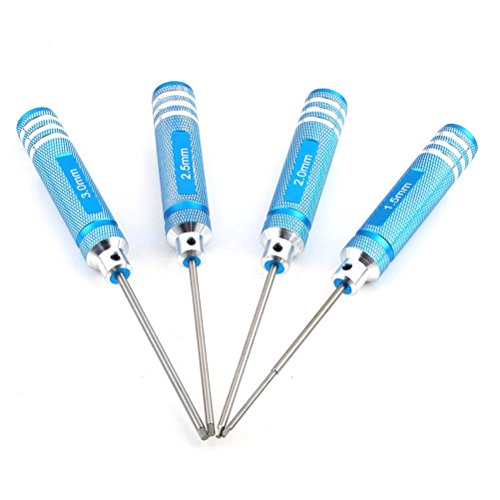 PIXNOR 4pcs Metal Hexagonal Hex Screw Driver Screwdrivers Tools Kit 1.5mm 2.0mm 2.5mm 3.0mm for RC Helicopter (Blue)