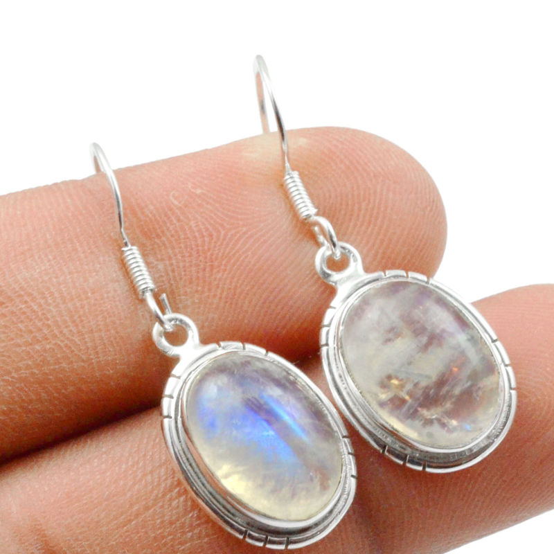 Rainbow Moonstone Solid 925 Sterling Silver Earring Jewelry E-45948 [CIN]