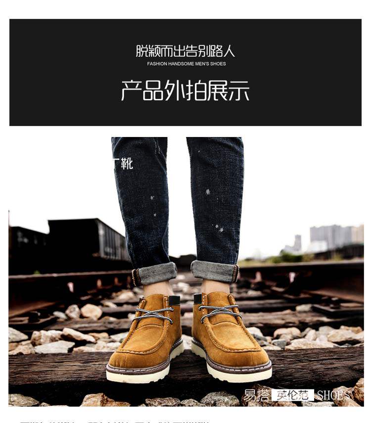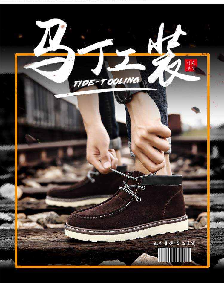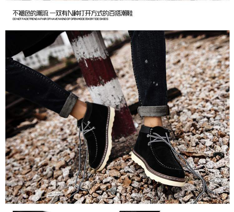 秋季男鞋子户外运动休闲鞋工装马丁鞋韩版潮流板鞋磨砂皮鞋男潮鞋