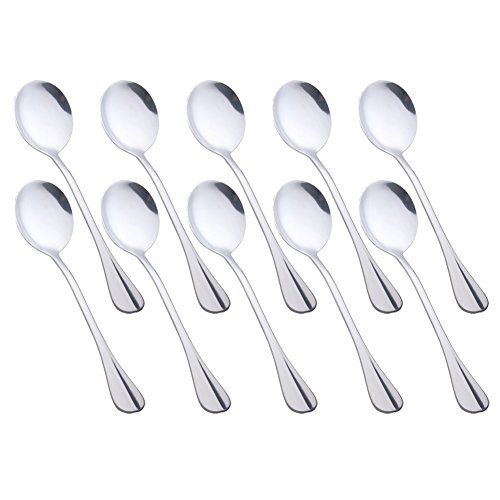 Zicome Stainless Steel Round Table Soup Spoons, Set of 10 (7 Inch)