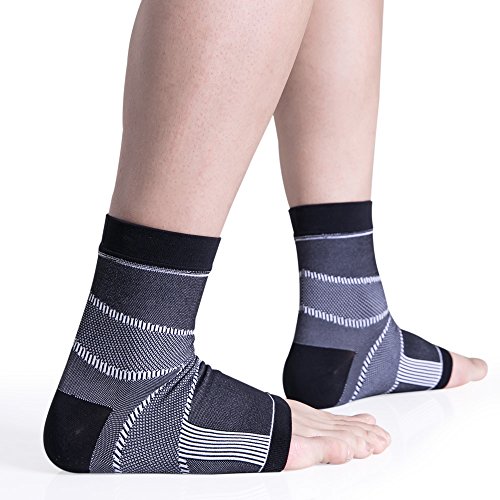 -. Binding : Health and Beauty -. Brand : Bracoo -. Feature : Strategic compression at the base of the sleeve relieves pain by compressing the plantar fascia ligaments; ankle compression also ensures firm support by contouring around the joint and ligaments during motion; the most recommended design by orthopaedic surgeons / Helps prevent re-injury while providing pain relief; reduces swelling and body-fluid uptake; increases blood circulation around the foot to aid recovery and boost performance / Thin-layer design can be worn comfortably with socks and inside shoes; perfect for athletes and runners / Breathable fabric made of nylon and spandex; effective throughout the day and night; Quickdry moisture dispersion ensures dryness; machine washable / Ensure a perfect fit by measuring the foot arch circumference; S/M: 18-26cm, L/XL: 23-31cm (see chart for shoe sizes) -. IsAdultProduct : 0 -. Label : Comfylife -. Manufacturer : Comfylife -. PackageQuantity : 2 -. ProductGroup : Health and Beauty -. ProductTypeName : HEALTH_PERSONAL_CARE -. Publisher : Comfylife -. Studio : Comfylife -. Title : Bracoo Plantar Fasciitis Socks with Arch Support, Compression Sleeve for Recovery and Pain Relief S M L XL