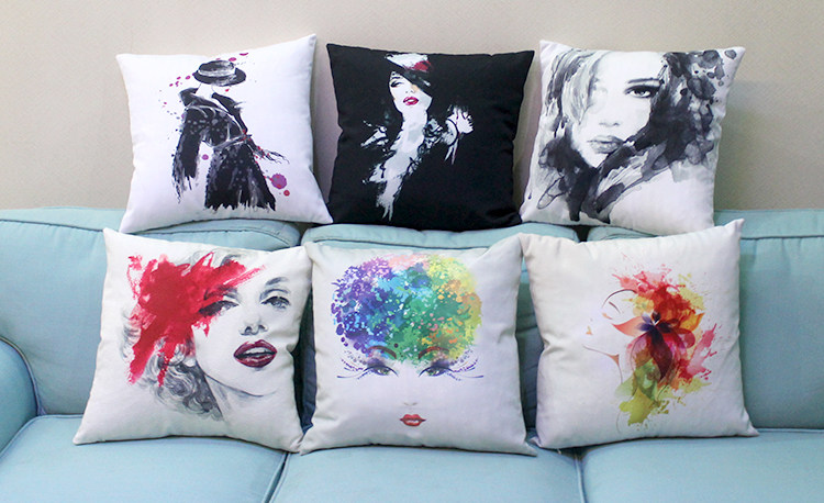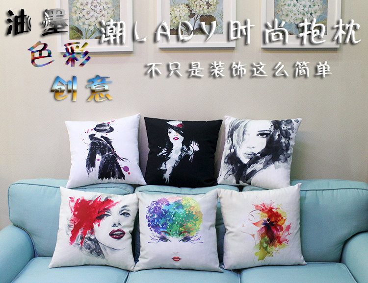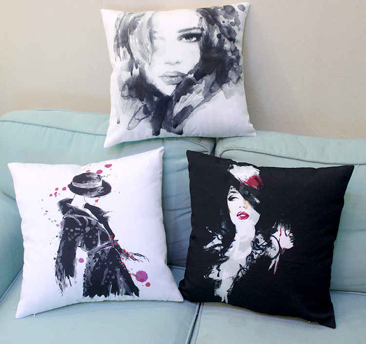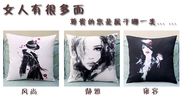 [Name] Europe and the United States ink illustrator style beauty figures digital printing pillow