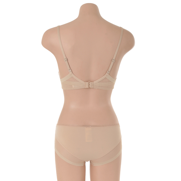 와이어가 패드 속에 감춰져 있어 가슴에 주는 압박이 최소화 되며 자연스러운 볼륨업의 푸쉬업브라 입니다. 가벼우면서 볼륨업된 가슴의 곡선을 자연스럽게 형성하고 일반 마이크로 소재의 브라보다 부드럽습니다. 패드 속의 히든 와이어로 가슴에 주는 압박 최소화 하고 어깨끈을 X자로 착용하면, 섹시한 가슴골을 형성해 주며 어깨끈이 흘러내리는 것을 방지합니다. 더블 메쉬 윙으로 옆라인부터 백라인까지 안정감있게 잡아줍니다. 다른 브라와 차별화된 더블 크로스 고어가 세련미를 더합니다. 팬티는 부드럽고 쉬어한 마이크로 패브릭으로 웨이스트 라인과 옆라인에 들어간 메쉬 디테일로 여성스러우면서섹시함이 돋보입니다. 힙스터는 비키니보다 옆라인이 길어 힙라인을 매끄럽게 잡아줍니다.