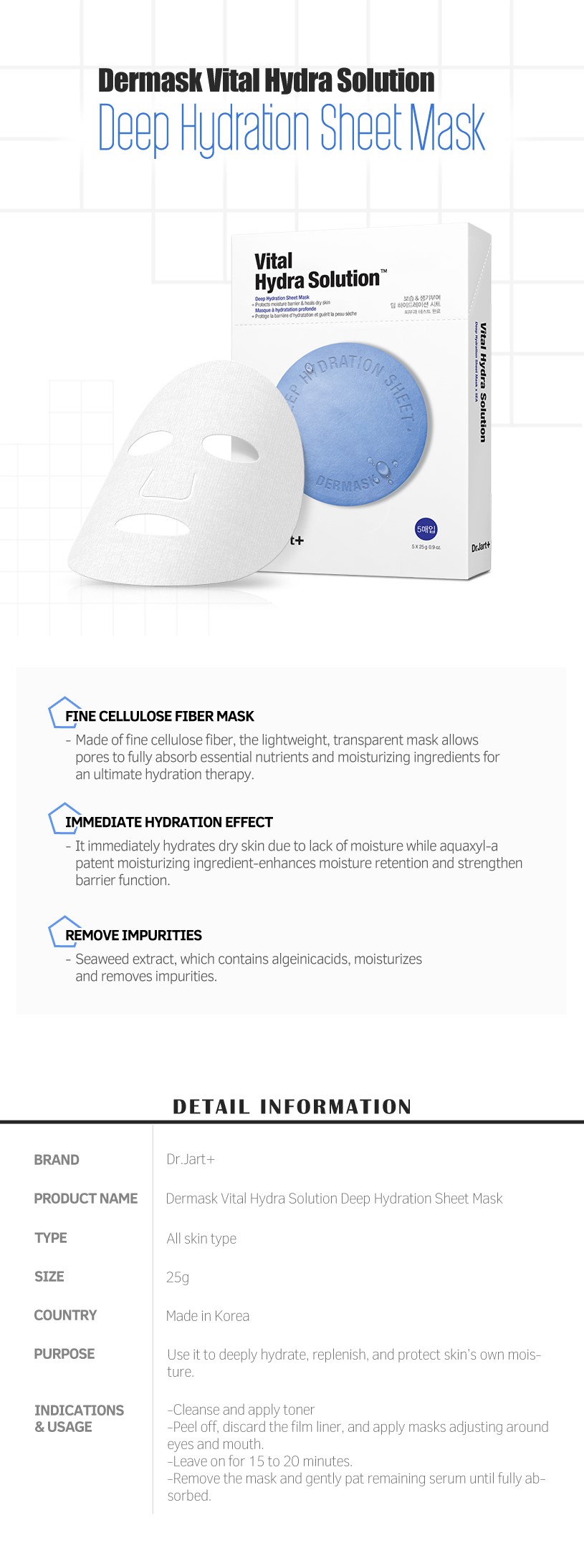 The Dermask Water Jet Vital Hydra Solution™ is made with fine cellulose fiber to help active ingredients penetrate deeply for ultimate hydration. It contains aquaxyl and xylitol to enhance moisture retention and strengthen the skin's barrier by preventing water loss. Oligo-hyaluronic acid and algae extract supports long-lasting moisturization and supports natural collagen synthesis to keep your skin looking and feeling hydrated and completely refreshed.