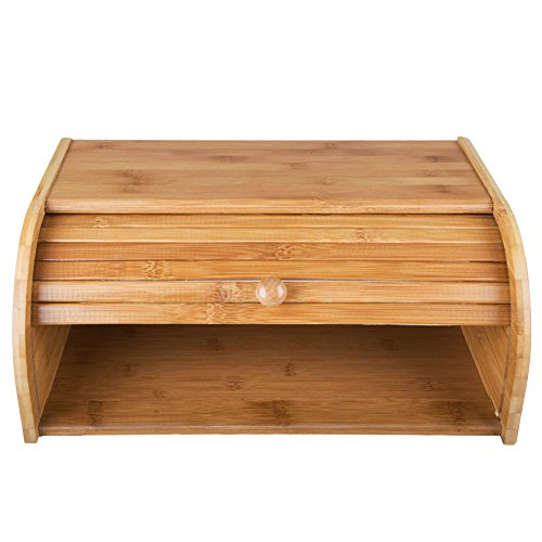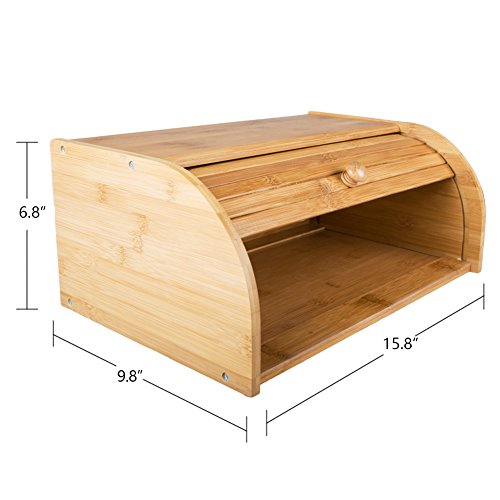 15.8"x 10.8"x 6.8" Pure Bamboo Bread Box Vintage Rolltop Bread Holder Large Capacity Bread Storage
