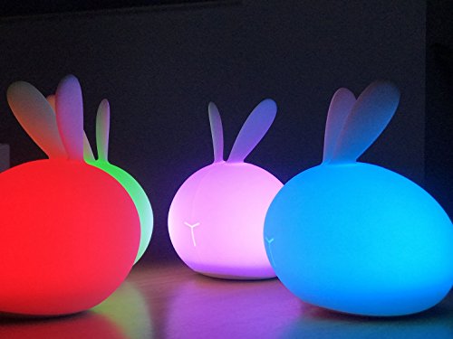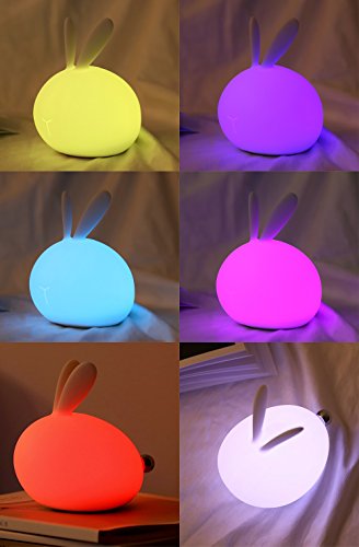 LED Night Light Lamp with 7 Colors, XUEJET Soft Silicone Cute Rabbit Bunny Lamp USB Chargeable for Baby Children Home Bedroom