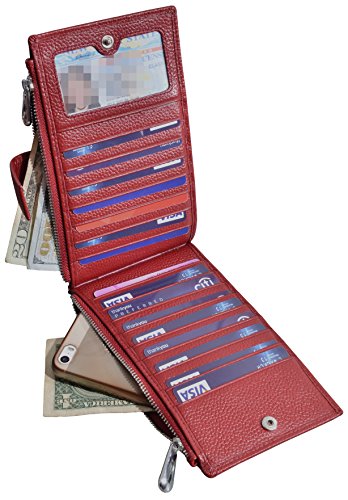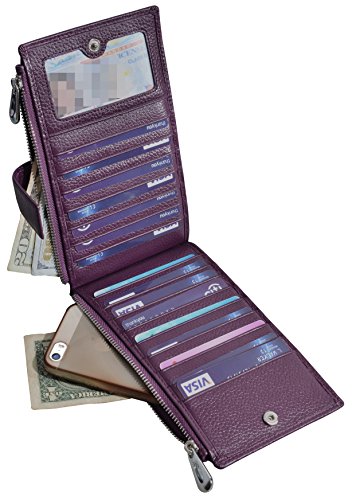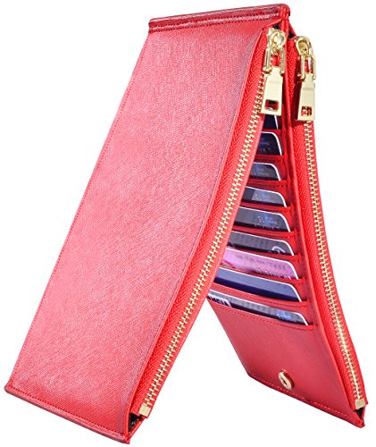 Hopsooken Women's RFID Blocking Bifold Leather Credit Card Holder Wallet Case