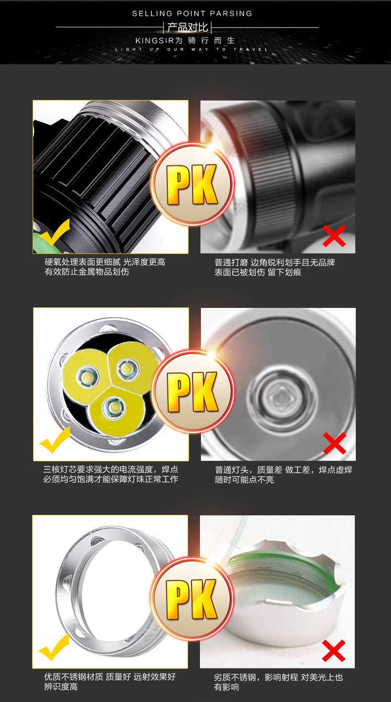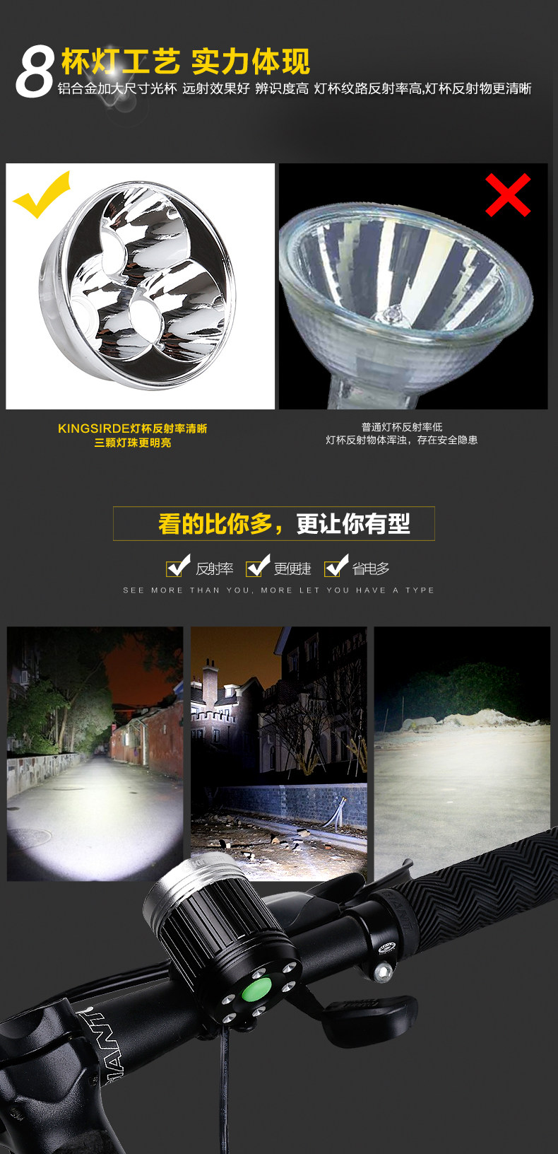 自行车灯前灯夜骑山地USB车灯充电强光LED骑行灯单车配件装备