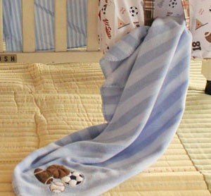 -. Feature : 8-pcs set includes:(1)quilt, (4)bumper pads, (1) fitted sheet, (1) dust ruffle(skirt), (1) fleece blanket / Hand sew-on pattern / Thread Count: 200 / Material: Cotton, Polyester / Care and Cleaning: Tumble dry, Machine Wash