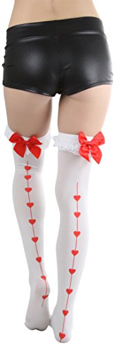 -. Title : ToBeInStyle Women's Heart Backseam With Ruffle And Satin Bow Thigh Hi