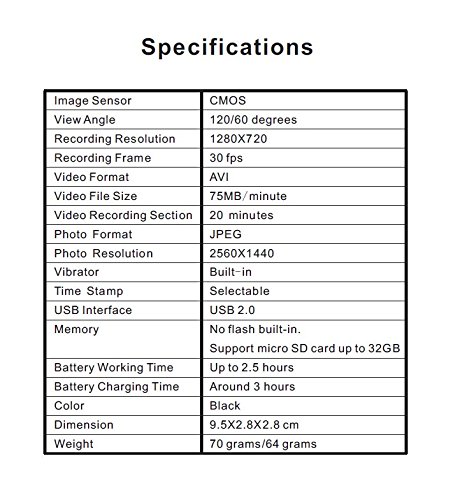 High definition CMOS lens, 30fps recording frame, 120 degree view angle
