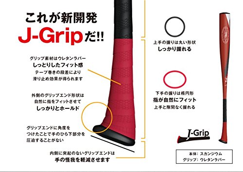 인간공학에 기초해 스타일리시에디자인된「J그립」서는,종래의 그립에 비해,배트를 쥐는 그립 면적이 확대.안정성을 향상시키고, 배트 콘트롤을 비약적으로 높입니다.