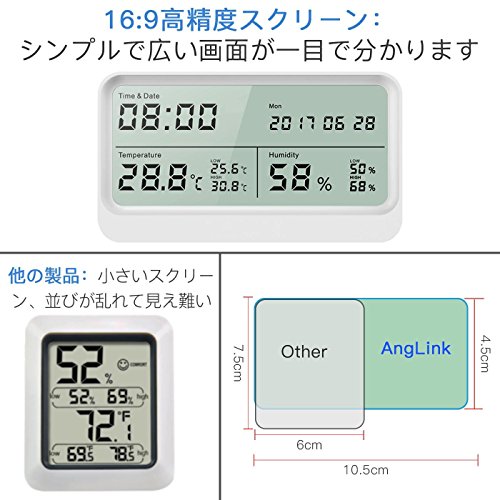 -. Title : AngLink デジタル湿度計 温度計 室内 大画面 最高最低温湿度同時表示 置き掛け両用タイプマグネット付 T008