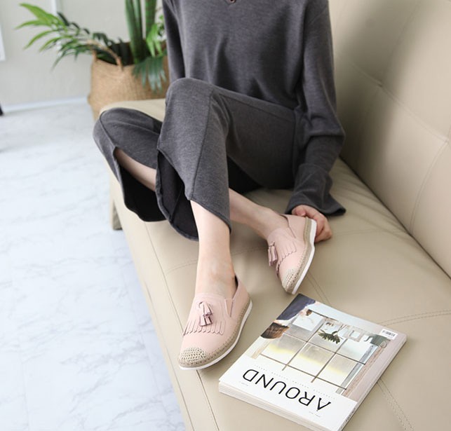 商品名:スリッポン レディース スニーカー フリンジ タッセル 2018 春 ファッション 靴 婦人靴