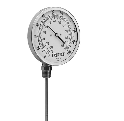 Trerice B8340204 Bottom Connection Bimetal Thermometer, 1/2" NPT Connection, 3" face, 2.5" stem, 0-200˚F & C