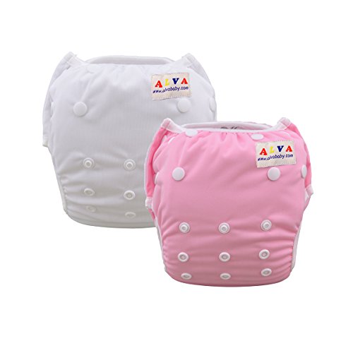 ALVABABY Swim Diapers 2pcs Pack One Size Reuseable Washable 0-36 months (Baby Girls)