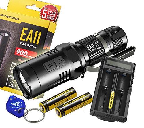 EA11 Flashlight, 2x Nitecore IMR 14500, Nitecore UM20 digital charger, Quality holster, clip, lanyard, spare o ring, and LumenTactical Keychain Light 0