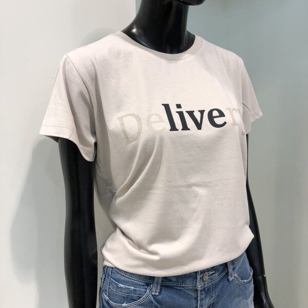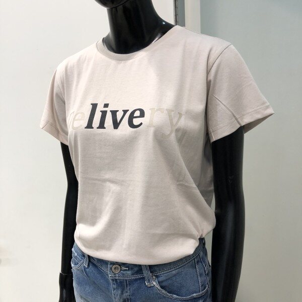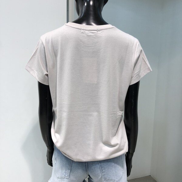 가슴 중앙에 후로피 필기체 레터링이 포인트로 들어간 라운드 티셔츠입니다.