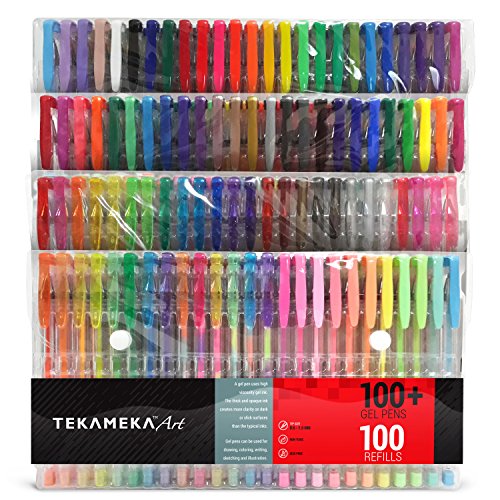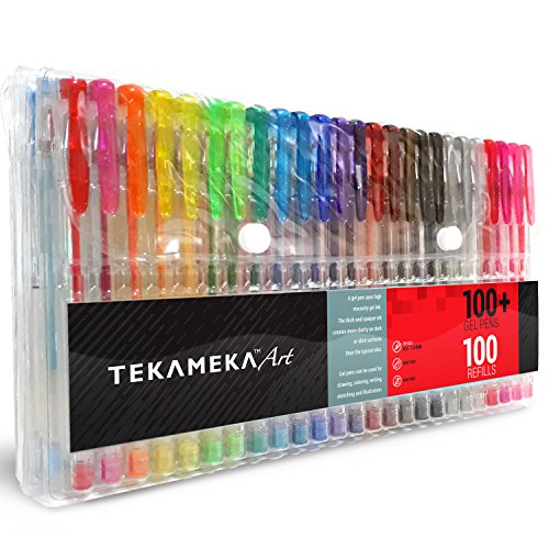Tekameka Art Gel Pens Set 200 Pack (100 + 100 Refills) - Ink Pen Markers For Drawing And Adult Coloring Books