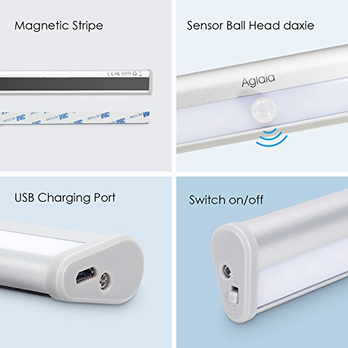 Aglaia Closet Light 20 LEDs with Motion Sensor, Stick on Lights with Magnetic Strip, USB Rechargeable with Built-in 1000mAh Battery