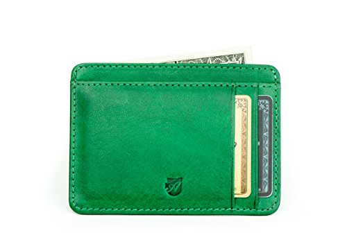 -. Feature : High Quality Leather: Full grain vegetable tanned leather from the renowned leather district of Tuscany, Italy / Quality & Craftsmanship: All wallet are carefully handmade by seasoned craftsmen / Thin profile: All designs fit comfortably in your front pocket without protruding. / Shielded: All models come with an RFID-blocking pocket to protect your sensitive cards from wireless skimming or ID-theft. / Gets better with use: Vegetable tanned leather develops a beautiful patina over time and is very durable