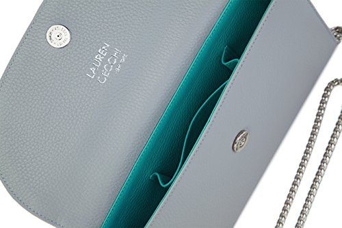 Product Description Fashion forward and stylish, the Lauren Cecchi New York Stretta for women is sure to replace your old wallet or wristlet. Its unique detachable gold or silver strap allows it to be worn as a cross over hand bag or used as an evening clutch. Chic snap closures in either silver or gold ensure your belongings are safe at all times. Made from 100% Genuine Italian leather, this purse is certain to withstand day to day use. Each Stretta is expertly crafted in New York ensuring ultimate quality is delivered to each and every customer. 0