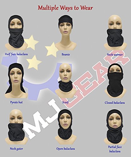 MJ Gear Balaclava Ski Mask [9in1] Full Face Mask Motorcycle Balaclava, Running Mask for Cold or Hot Weather Life Time Warranty