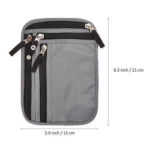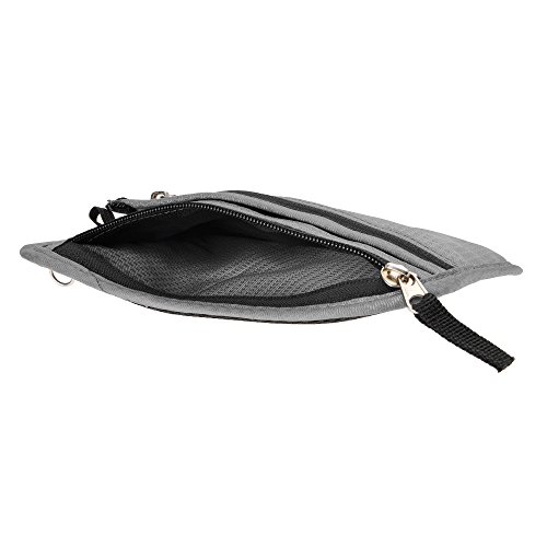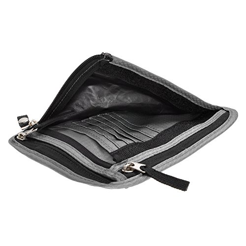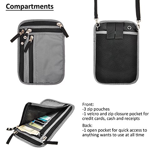 Flexible Storage &Organization: 5 separate compartments for easily organizing your passports, cash, credit cards, smartphone, keys, boarding passes and other valuables - (Front) 3 zippered pouches, 1 velcro and zippered closure pocket for credit cards, cash and receipts; (Back) 1 rear open pocket for quick access to anything wants to use at all time