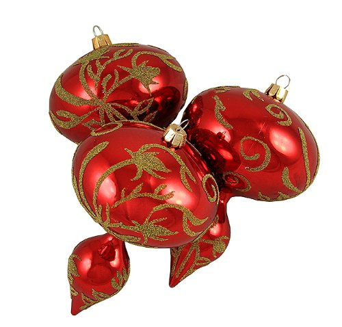 Barcana 3 Count Red and Gold Beaded Floral Shatterproof Christmas Finial Ornaments, 5"