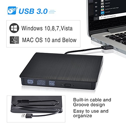 PLUG AND PLAY - No need for any additional software and extra power supply. Just Plug external DVD drive into laptop USB 3.0 interface, press pop-up button and put disc on tray, it will be automatically recognized and play, it's ease of use