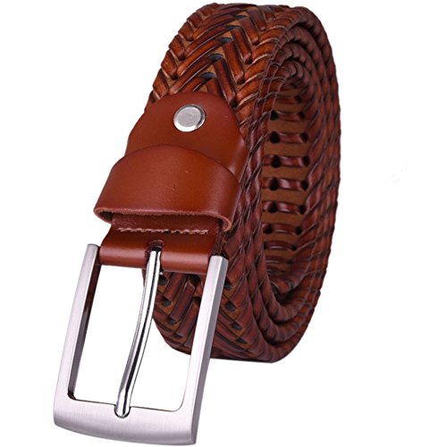 Product Description GleeCluster Genuine Leather Braided Woven Belt for Men with Prong Buckle 0