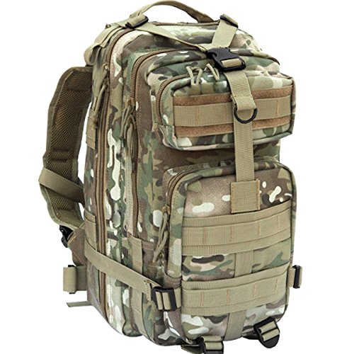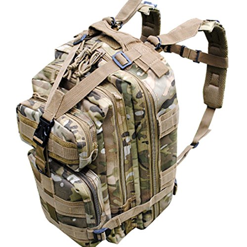 - Two Spacious compartments with small pouches inside and two front pockets, the Rucksacks Tactical Backpack is ready to meet your needs.