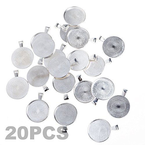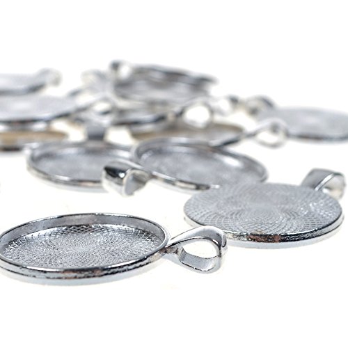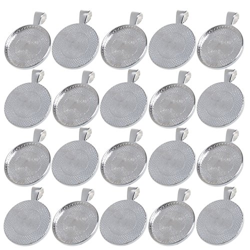 BCP 20pcs 1inch Circle Pendant Blank Tray Cabochon Settings (Silver Color)