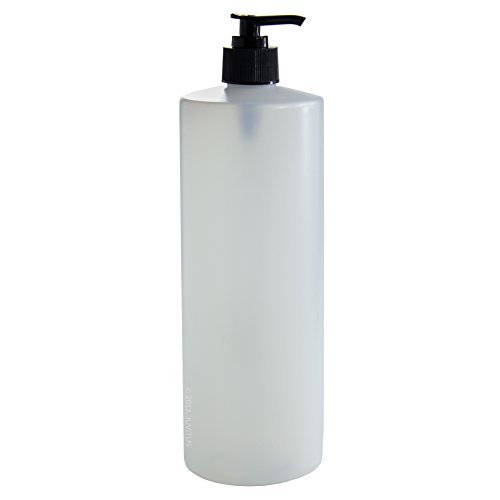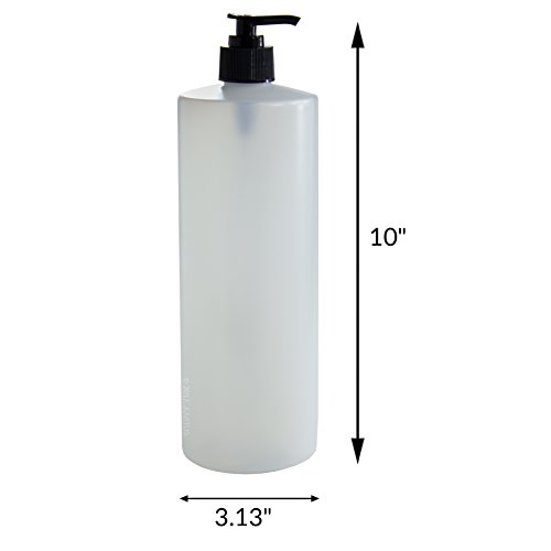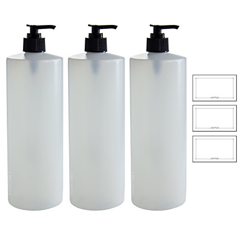 Clear Natural Refillable Plastic Squeeze Bottle with Black Lotion Pump Dispenser 32 oz Extra Large - (3 Pack) + Labels
