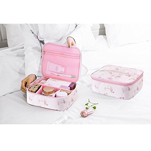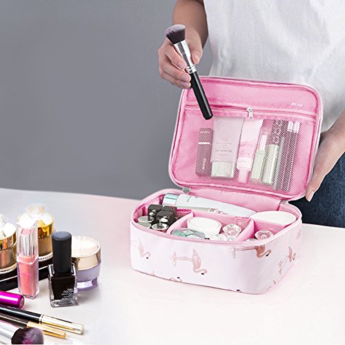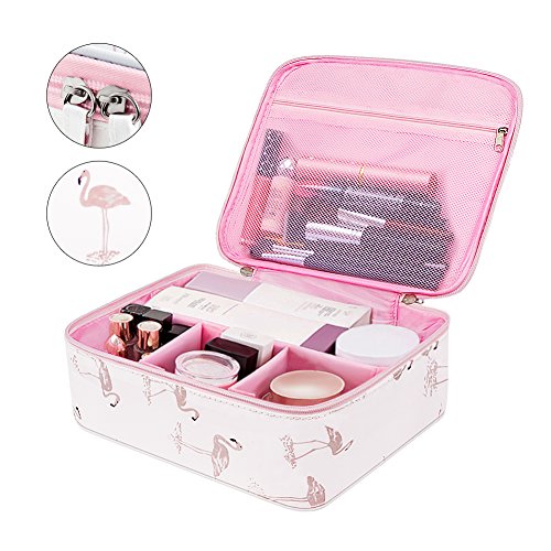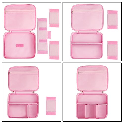 - NOVEL DESIGN AND GOOD LOOKING: Change internal compartments by the adjustable padded dividers as you need; With two-way zippers makes the portable cosmetic bag more convenient to open close. Pink color with girls’ favorite patterns.