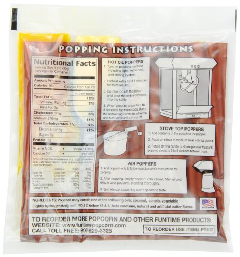 FunTime Perfect Popcorn, 4oz 3-in-1 Popcorn Pouches (Case of 12 Pouches)