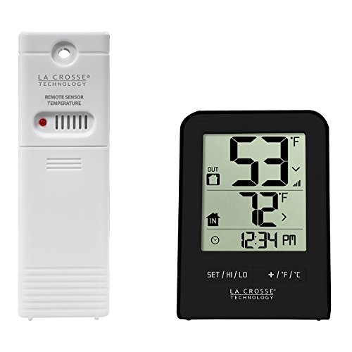 -. Binding : Misc. -. Brand : La Crosse Technology -. Color : Black -. EAN : 0757456085692 -. Feature : Monitors indoor & wireless outdoor temperatures / Hi/low records of temperature values / F/C adjustable / 12/24 hr time format / 300 ft transmission range -. Label : La Crosse Technology -. Manufacturer : La Crosse Technology -. Model : 308-1409BT-CBP -. MPN : 308-1409BT-CBP -. PackageQuantity : 1 -. PartNumber : 308-1409BT-CBP -. ProductGroup : Home -. ProductTypeName : HOME -. Publisher : La Crosse Technology -. Studio : La Crosse Technology -. Title : La Crosse Technology 308-1409BT-CBP Wireless Temperature Station with Time, black, -. UPC : 757456085692