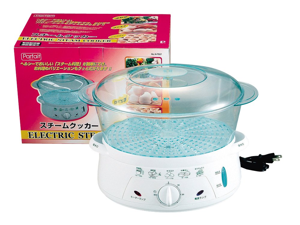 Material: lid, steamer / polycarbonate (heat resistant temperature 150 ° C), water tank · saucer · ring / polypropylene (heat resistant temperature 120 ° C), heating part / aluminum alloy (fluorine