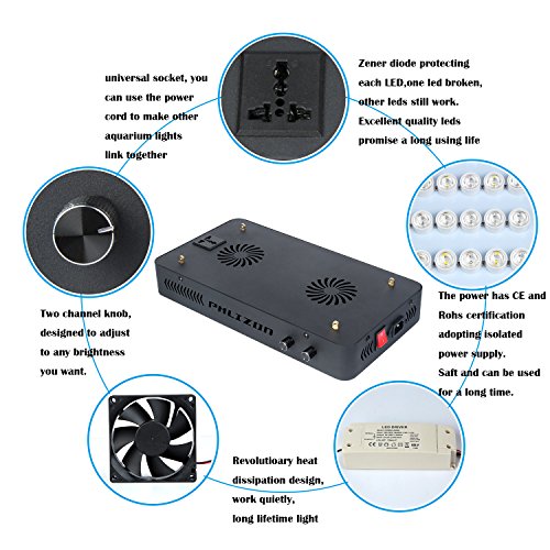 FULL SPECTRUM- Include Blue Purple Red White and Green Light.Purple light can be used to sterilize and protect fish growth. Blue light promotes plants to defense mechanisms.White and red Light is essential for coral reef growth. All these lights are properly matched to make your aquarium healthy and beautiful.