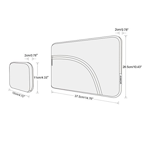 - Feature : Precise fit for laptops and ultrabooks with 15.6 inch macbook display / Slim-line design allows this case to be carried solo or fit in your favorite bag / Canvas Fabric material offers a fashionable design and superior protection, fluffy fabric lining protects laptop/netbook from dust, shocks, bumps, scrapes and scratches & spills / Extra pocket is convenient to put mobile phone, notebook, cards, USB cable, headphone cable, mouse, power bank, stylus and other accessories; Bonus Zippered power pockets stores your power adapter and other accessories / Thickness: 0.45 cm; Product dimensions - 14.96" (l) x 0.79" (w) x 10.63" (h) 38cm (l) x 2cm (w) x 27cm (h); Fits devices - 14.76" (l) x 0.78" (w) x 10.43" (h) / 37.5cm(l) x 2cm(w) x 26.5cm(h)