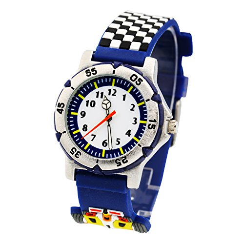 -. Title : Eleoption キッズ腕時計 子供用時計 男の子 ステンレス クオーツ腕時計 キッズウォッチ 可愛い図案 誕生日/卒業祝い/クリスマスのプレセント生活防水 3D レーシングカー (ブルー)
