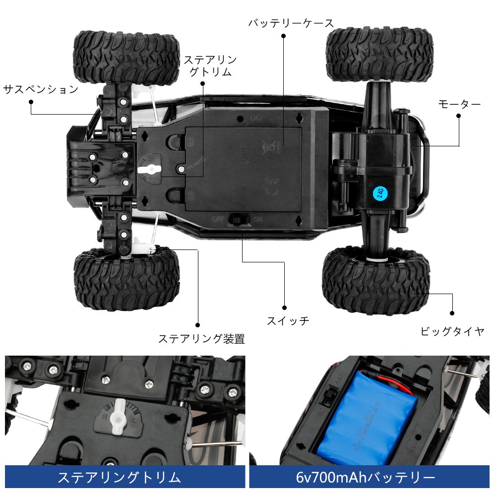 In order to improve running stability, it is equipped with large stroke suspension, large diameter tire and so on.