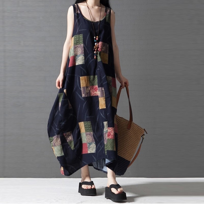 Feature: Sexy Women Retro Printed Sleeveless Round Neck Vest Tops Loose Long Maxi Lantern Dress. Have 4 Sizes.