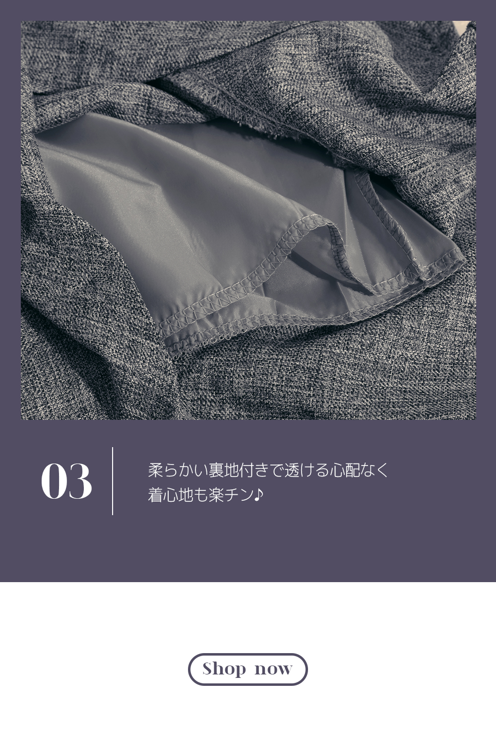 | 詳細情報 | サイズ-ジャスト/伸縮性-なし/厚み-普通/裏地-あり/透け感-なし |