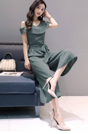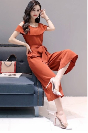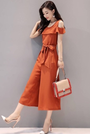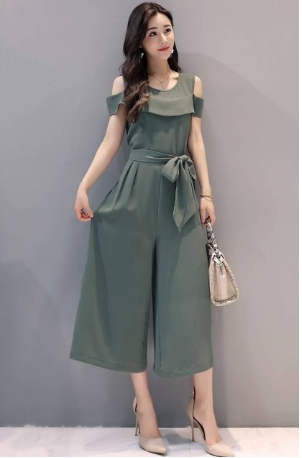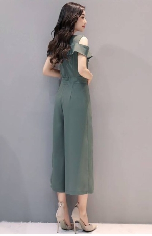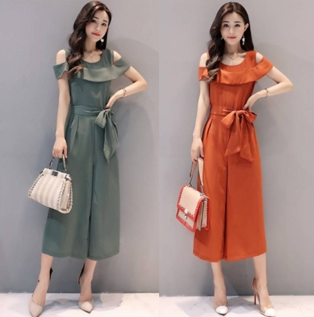 オフショル風ノースリーブクロップド丈のオールインワンです。
