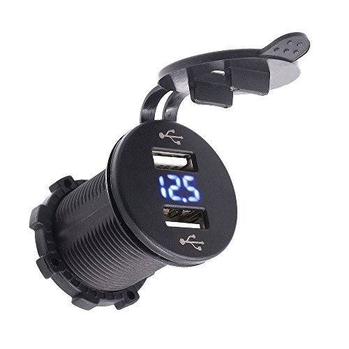 -. Title : TurnRaise 2 USB Charger Socket Power Outlet 2.1A & 2.1A with Voltmeter for iPad iPhone Car Boat Marine Mobile Blue LED Light