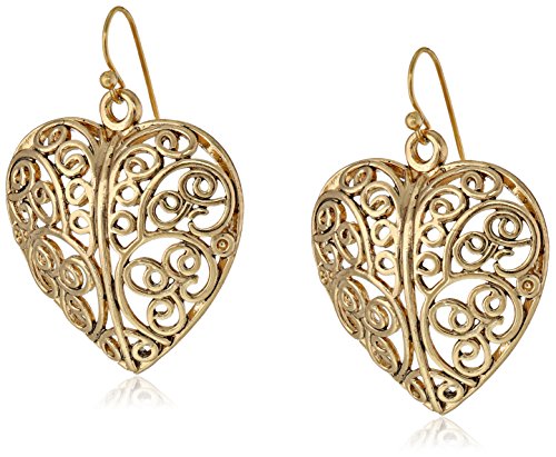 1928 Jewelry Gold-Tone Puffed Filligree Heart Earrings